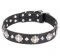 Order gorgeous leather dog collar studded with bright chrome plated medals. The accessory is more than just fashionable and attractive one, it’s of high quality and durable materials.