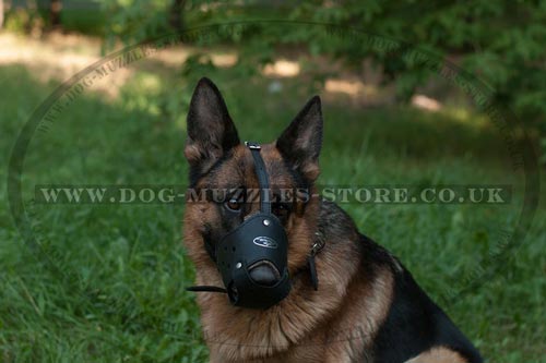 Check how this leather dog muzzle for biting looks on German Shepherd Dog