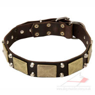 Fashion Dog Collar with brass plates design Designer leather dog collar with vintage design for style and comfort of your dog. This dog collar is made of natural leather... more info