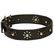 Beautiful Dog Collar "Lucky" with Flowery Studs New designer dog collar is decorated with flower-engraved studs. It is a stylish dog accessory for your favorite pooch.... more info