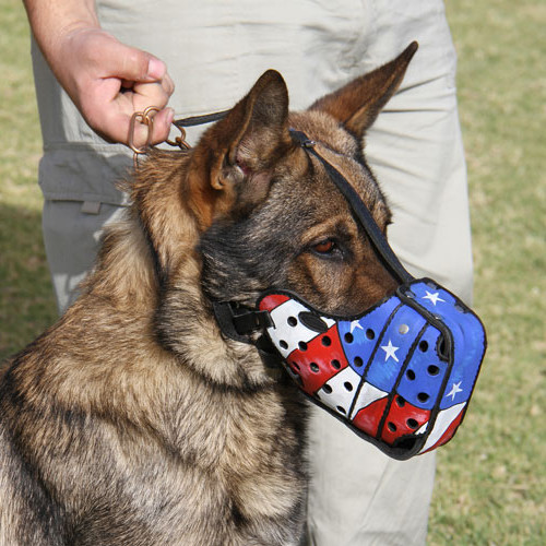 Original Design Dog Leather Muzzle "American Pride"