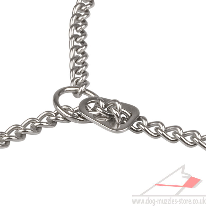Dog slip collar is made of stainless steel of high quality. It is equipped with cast O-rings and stopper. The stopper will control the choking effect of the collar and will not hurt your dog if you regulate its size according to the neck size of your dog.